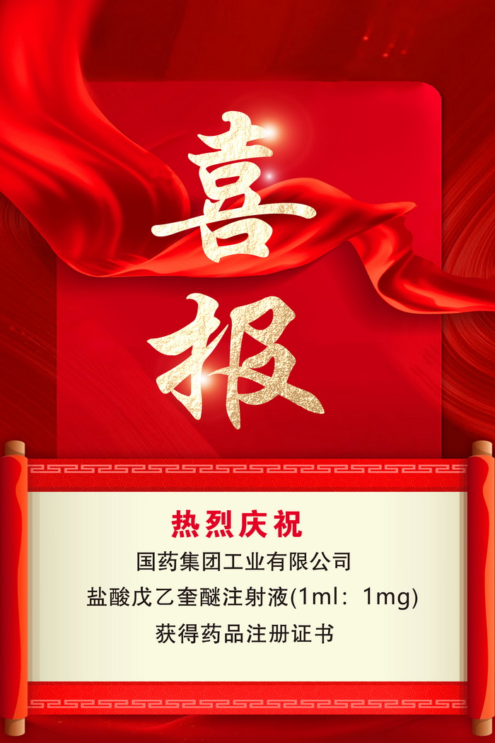 近日,国药集团工业有限公司(简称国药工业)收到国家药品监督管理局核准签发的盐酸戊乙奎醚注射液(1ml:1mg)《药品注册证书》。